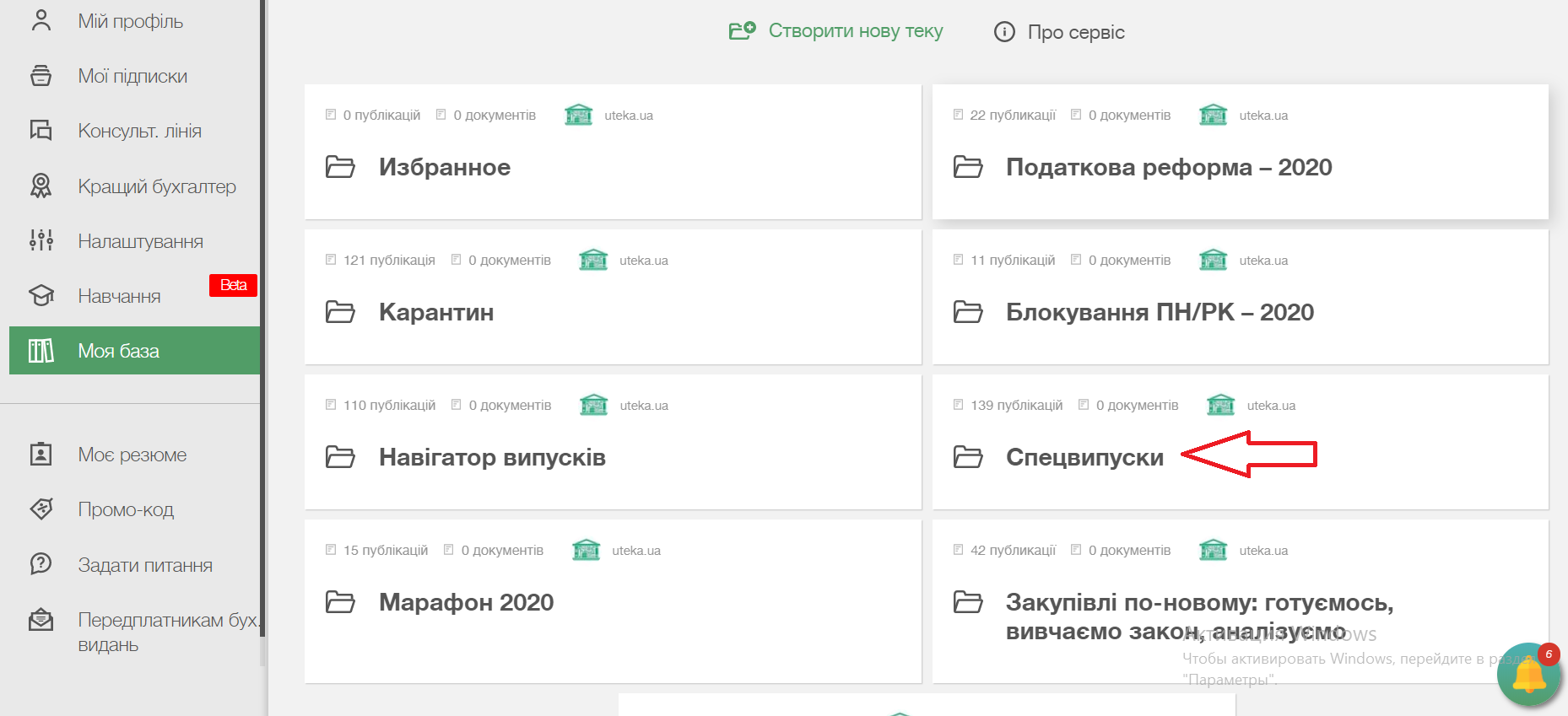 Також всі тематичні випуски розміщені в особистому кабінеті в розділі Моя база - Спецвипуски.