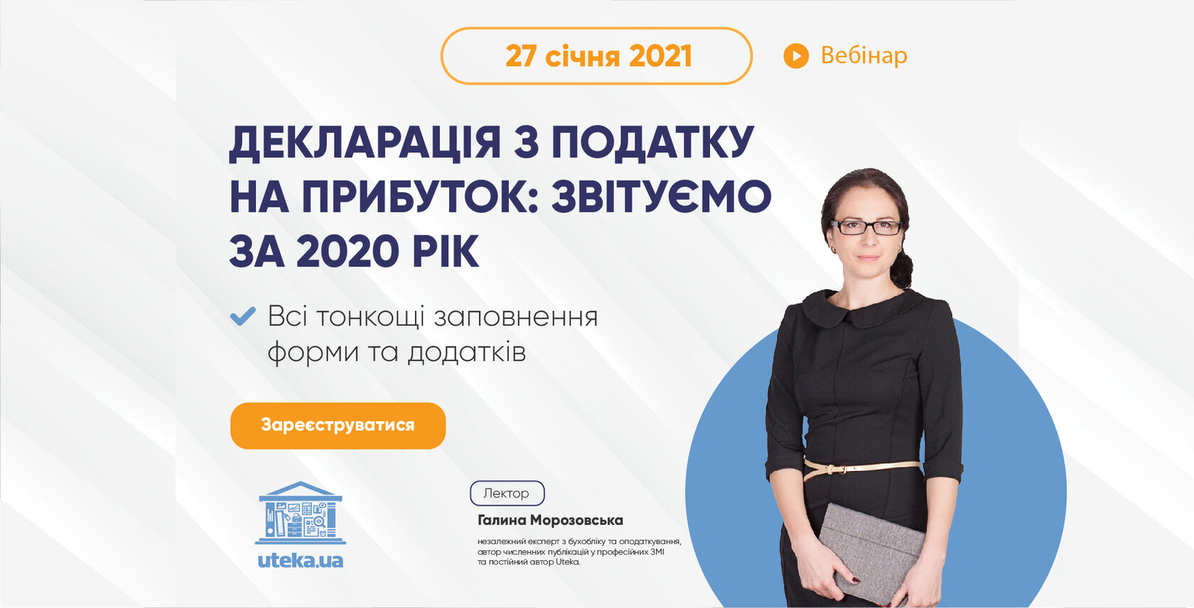 "Декларація з податку на прибуток: звітуємо за 2020 рік" Дата проведення: 27 січня 2021 року. Лектор: Морозовська Галина