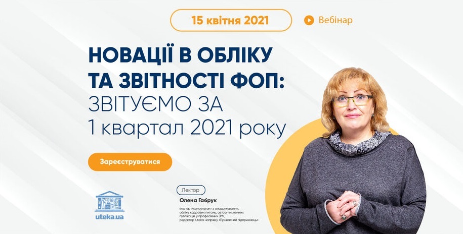 «Новації в обліку та звітності ФОП: звітуємо за 1 квартал 2021 року» Дата проведення: 15 квітня 2021 року з 11:00 до 13:00