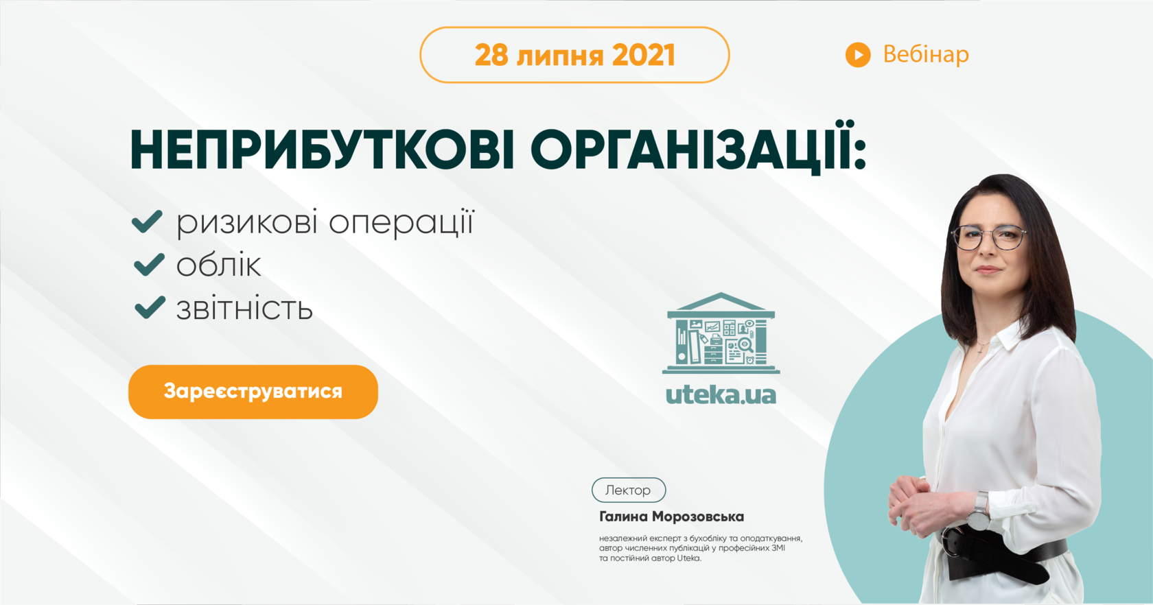 | Вітаємо, колего! Ваш відеозапис, презентація та корисні матеріали вебінару «Неприбуткові організації: ризикові операції, облік, звітність» додано. | | | | Запрошуємо до участі у наступному вебінарі: 5 серпня 2021 року "Збереження орендованої землі в умовах відкриття ринку землі: можливості, ризики, рішення" Лектор: Віктор Кобилянський