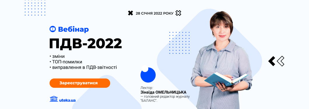 | Відбувся 28 січня 2022 | 1. ПДВ-зміни – 2022. 2. Як уникнути блокування ПН/РК. 3. Операції, звільнені від ПДВ, і правила розподілу ПДВ. 4. Топ-5 помилок із ПДВ та як їх уникнути. 5. Порядок виправлення помилок у ПДВ-звітності.