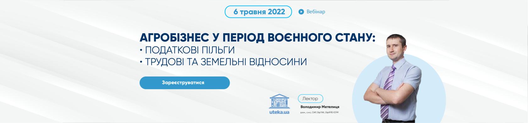 6 травня 2022 року Вебінар«Агробізнес у період воєнного стану: - податкові пільги