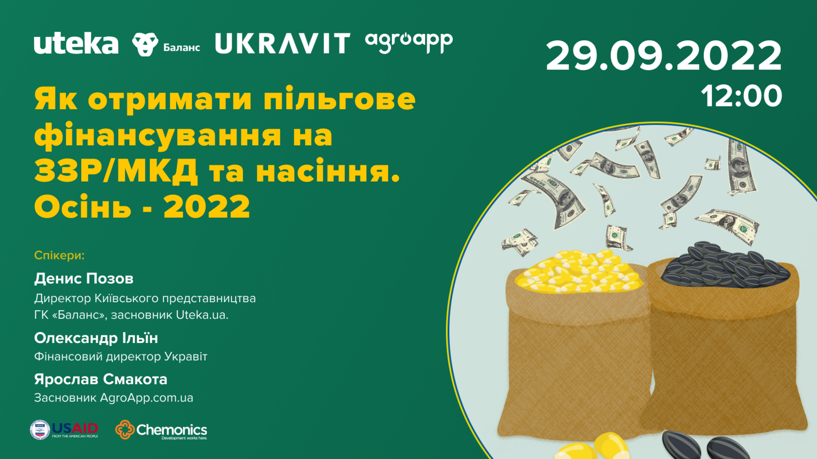 29.09.2022 відбудеться наш п'ятий онлайн – мітап: Як отримати пільгове фінансування на ЗЗР/МКД та насіння. Осінь 2022.