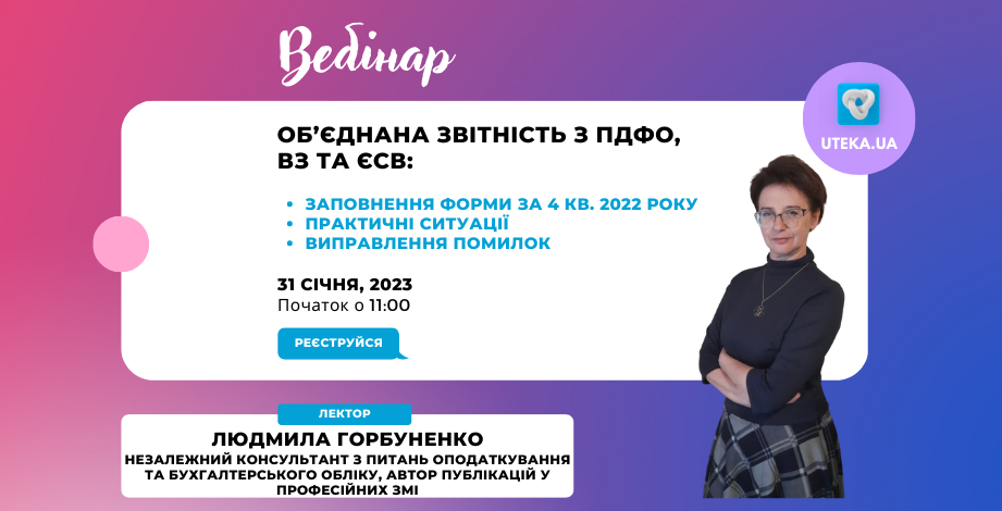 Лектор: Людмила ГОРБУНЕНКО, незалежний консультант з питань оподаткування та бухгалтерського обліку, автор публікацій у професійних ЗМІ.