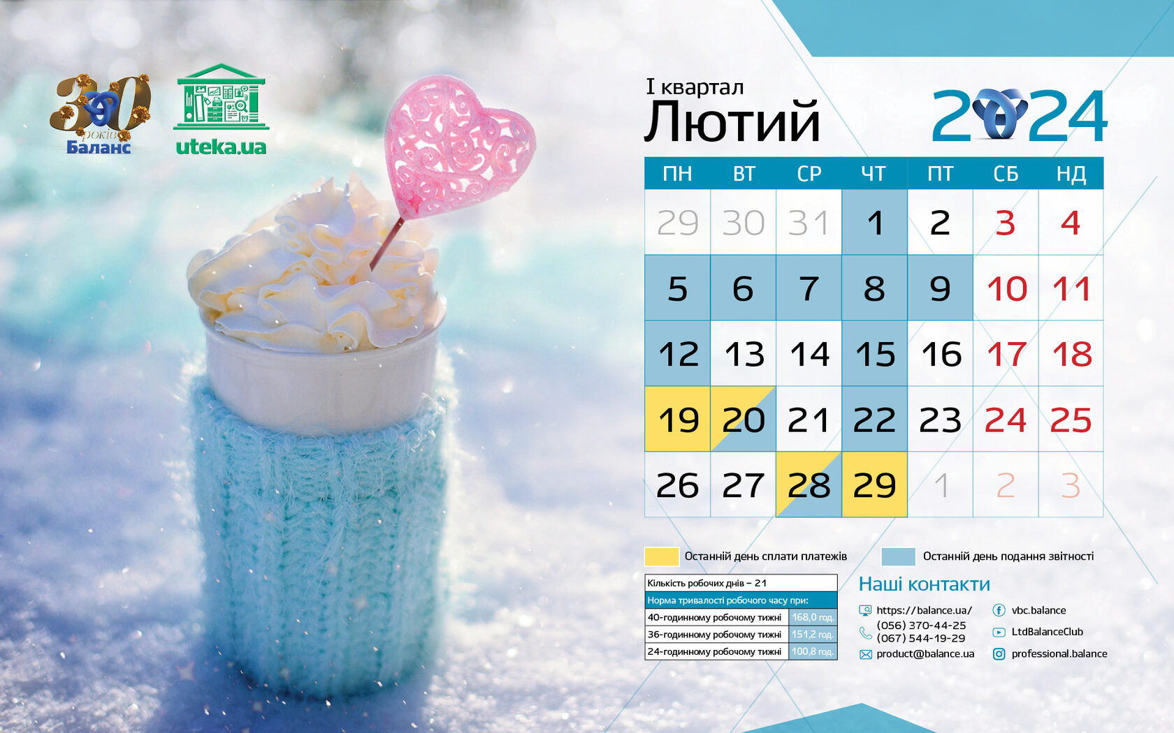 З Календарем бухгалтера від Uteka бухгалтер України почувається впевнено, спокійно та безпечно.