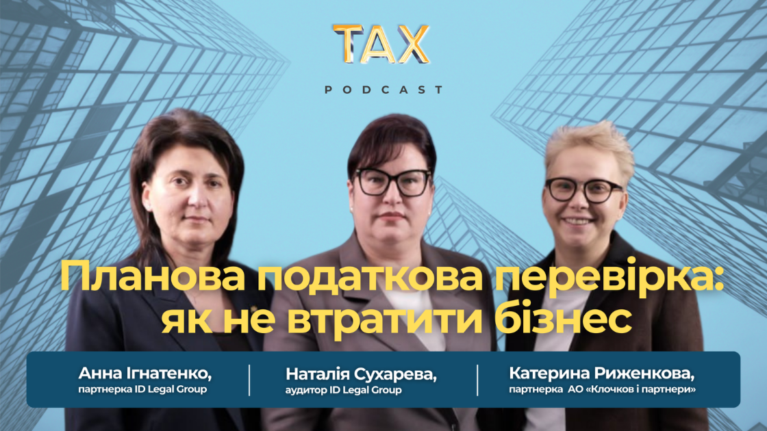 | 🎙️Спікери подкасту: | Анна Ігнатенко, партнерка ID Legal Group Катерина Риженкова, партнерка АО «Клочков і партнери» Наталія Сухарева, аудитор ID Legal Group, експертка з податкових перевірок і захисту бізнесу