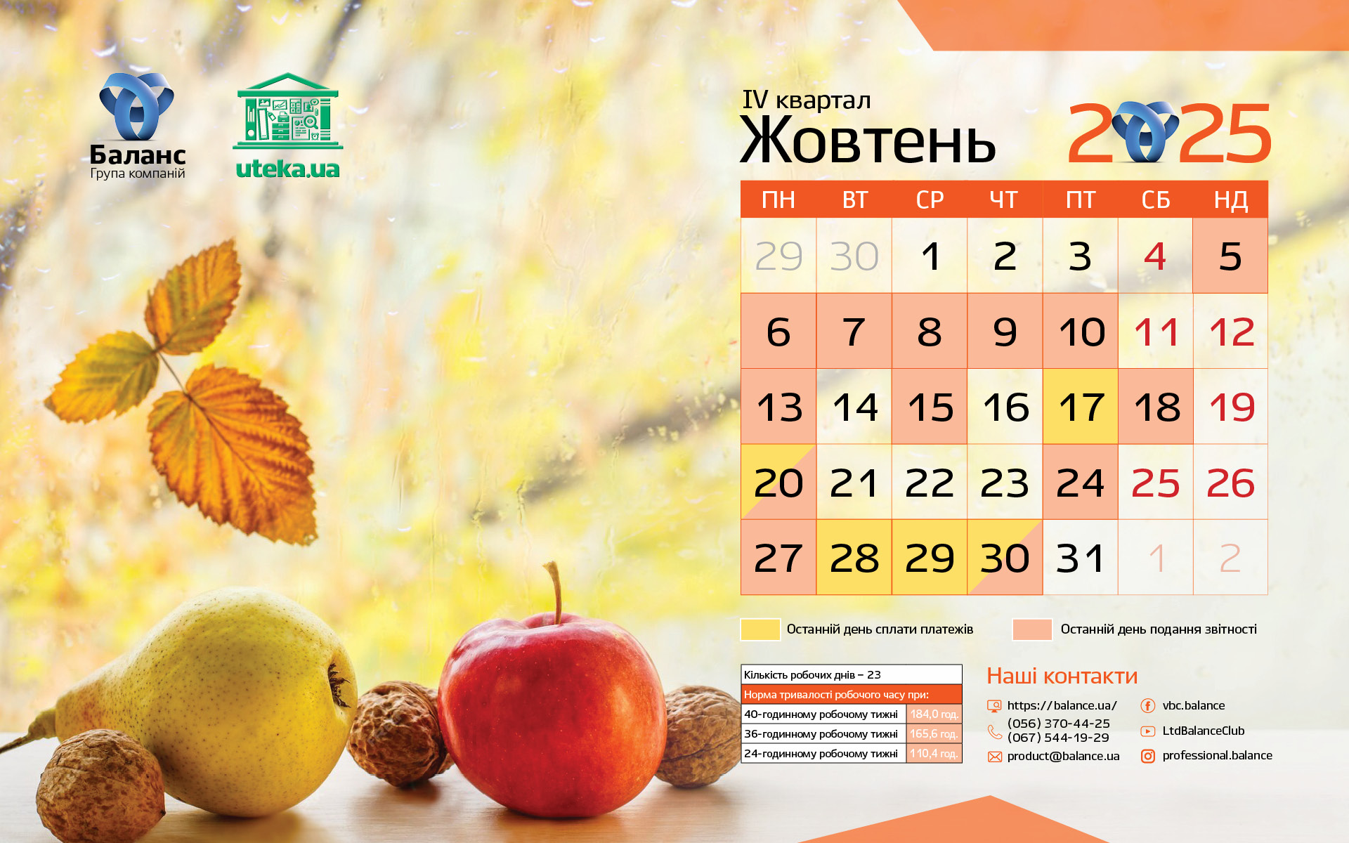 З Календарем бухгалтера від Uteka вам буде зручно працювати, адже потрібно весь час самостійно відстежувати граничні терміни подання звітності та сплати податків.