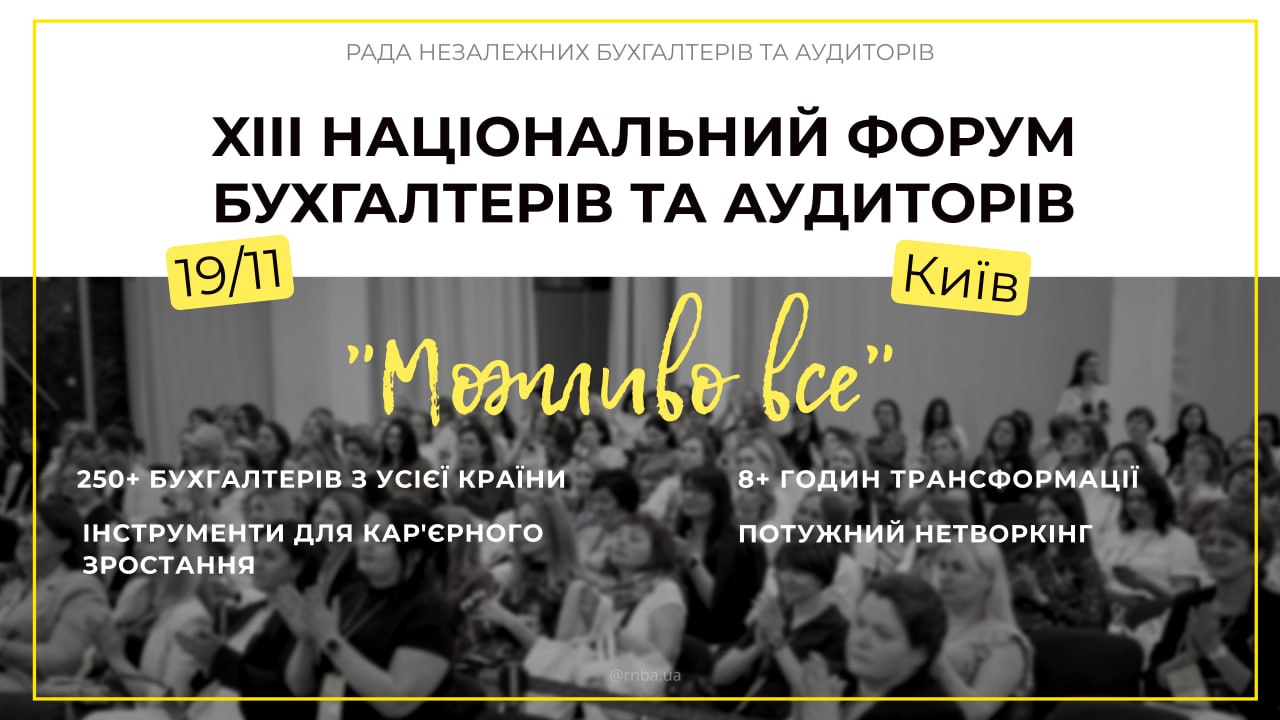 Запрошуємо вас на грандіозну подію у світі бухгалтерів та аудиторів України – Національний форум "Можливо все"! |