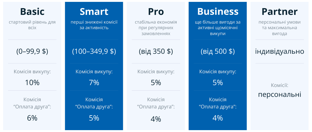 🛒 Викуповуєте товари — система автоматично призначає рівень та комісію.
