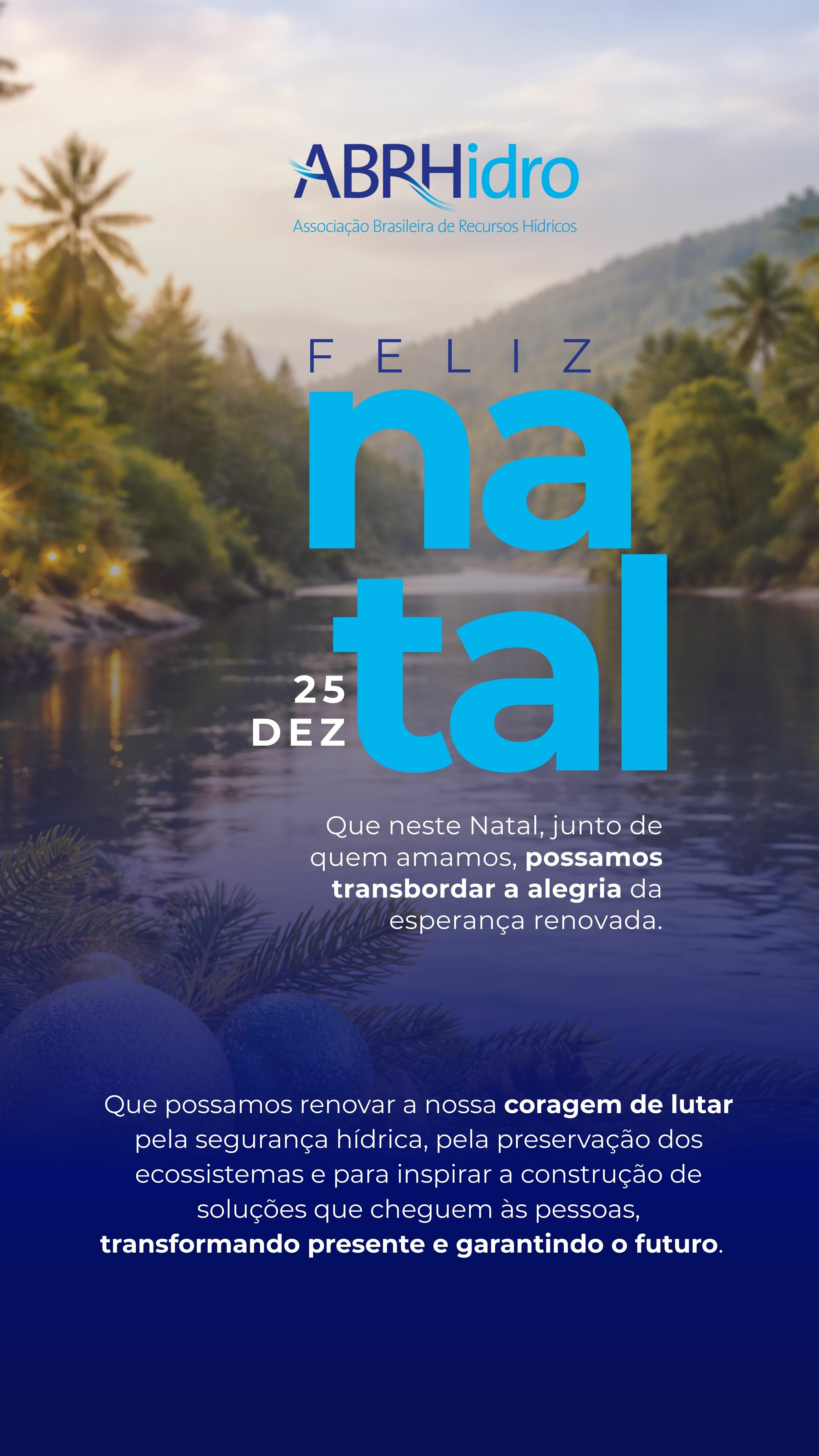 Neste Natal, também é tempo de agradecer a parceria e a caminhada construída ao longo de 2025. Em um período que convida à reflexão e à renovação, reforçamos um compromisso que nos une: cuidar da água é cuidar da vida, hoje e para as próximas gerações. A gestão de recursos hídricos nos lembra diariamente que transformar é uma necessidade constante. Transformar dados em decisões, planejamento em ação, conhecimento em políticas, cooperação em impacto real. E, acima de tudo, transformar desafios em soluções que protejam pessoas, ecossistemas e territórios. Que este tempo de celebração traga serenidade, esperança e energia para seguirmos juntos, com responsabilidade, diálogo e propósito. Com o desejo de um excelente e Feliz Natal, cheio de lindas memórias para colecionar, Associação Brasileira de Recursos Hídricos Gestão 2024-2025 |